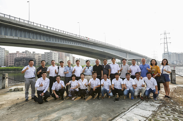 下午,部分與會嘉賓和專家又興致勃勃乘車來到東寶河新安特大橋現(xiàn)場進行參觀。施工單位中鐵七局集團有限公司的現(xiàn)場負責(zé)人向大家介紹了項目的基本情況和施工進展,并與大家進行了愉快的交流。據(jù)悉,東寶河新安特大橋位于深圳與東莞交界的東寶河上,采用城市主干道標(biāo)準(zhǔn)進行設(shè)計,分左右兩幅,于2014年12月17日開工建設(shè),2017年1月完成合龍,預(yù)計2017年8月通車。