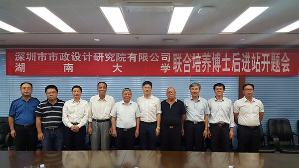 2017年7月29日下午,公司與湖南大學(xué)聯(lián)合培養(yǎng)博士后進(jìn)站開題會(huì)在市政設(shè)計(jì)大廈三樓會(huì)議室舉行。中國工程院陳政清院士,全國工程勘察設(shè)計(jì)大師王用中、車宇琳,湖南大學(xué)華旭剛教授,東南大學(xué)宗周紅教授,地鐵集團(tuán)陳湘生總工程師,深圳市人社局周寬山科長(zhǎng)以及我公司董事長(zhǎng)陳宜言設(shè)計(jì)大師等相關(guān)領(lǐng)導(dǎo)、專家參加會(huì)議。