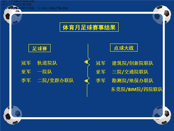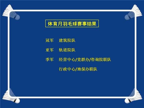 本次體育月自11月1日開(kāi)幕以來(lái),歷時(shí)一個(gè)月,設(shè)置了足球、籃球、羽毛球、乒乓球、攝影等比賽項(xiàng)目,各部門積極參與,反響空前。
