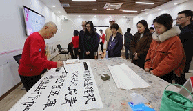 一入會場,便感受到四溢的濃濃墨香。四位老師揮毫潑墨,書畫傳情,用自己的作品傳達了對市政院新一年的祝福以及對廣大青年員工成長成才的期盼。厚重的翰墨與飛揚的青春在這里碰撞交融,在場青年員工們興致盎然,細品書畫之美,驚嘆各位書畫家的藝術(shù)水平,爭相與在場老師們交流,現(xiàn)場不時掌聲連連。
