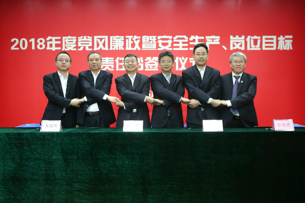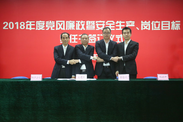 儀式開始,黨委書記、董事長(zhǎng)陳宜言與黨委副書記、總經(jīng)理蔡明和黨委副書記、紀(jì)委書記、工會(huì)主席郭明簽署了《2018年度崗位目標(biāo)責(zé)任書》、《2018年度黨風(fēng)廉政責(zé)任書》及《2018年度安全生產(chǎn)責(zé)任書》。黨委副書記、總經(jīng)理蔡明與副總經(jīng)理歐陽宇峰、副總經(jīng)理王建新、副總經(jīng)理張健君、副總經(jīng)理許華林、總工程師徐波簽署責(zé)任書。緊接著,各分管領(lǐng)導(dǎo)與分管部門負(fù)責(zé)人簽署責(zé)任書。